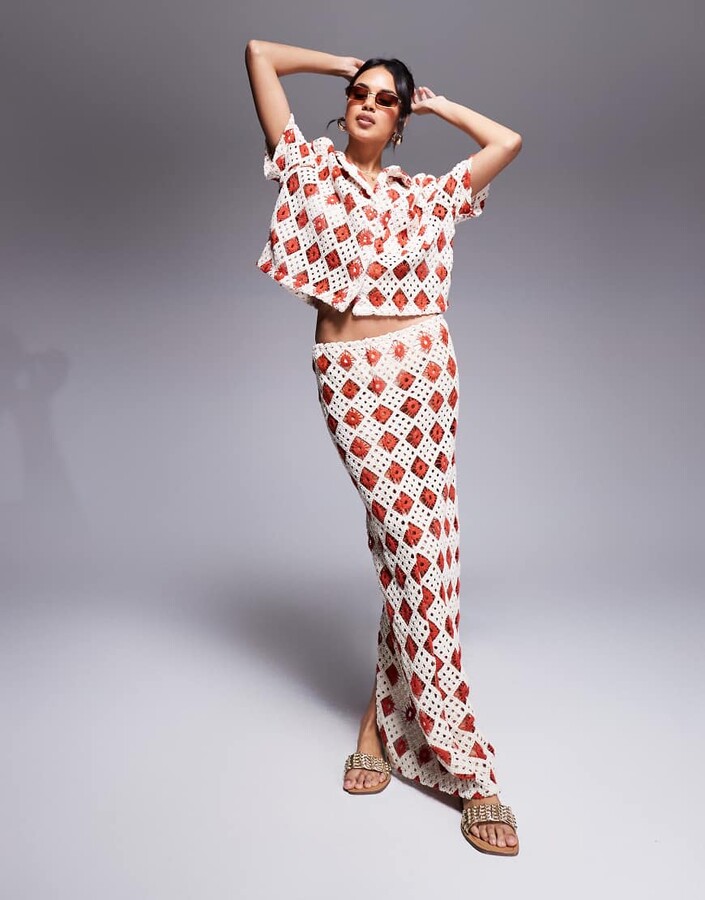 Source: South Beach crochet maxi beach skirt in cream and rust by South Beach